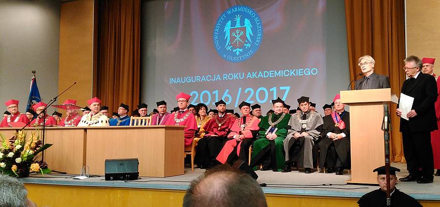 Verleihung der Ehrenprofessur an Prof. Dr. Egon Spiegel im Rahmen der Inaugurationsfeier (Eröffnung des Studienjahres 2016/2017) der UWM Olsztyn/Polen, 30.10.2016