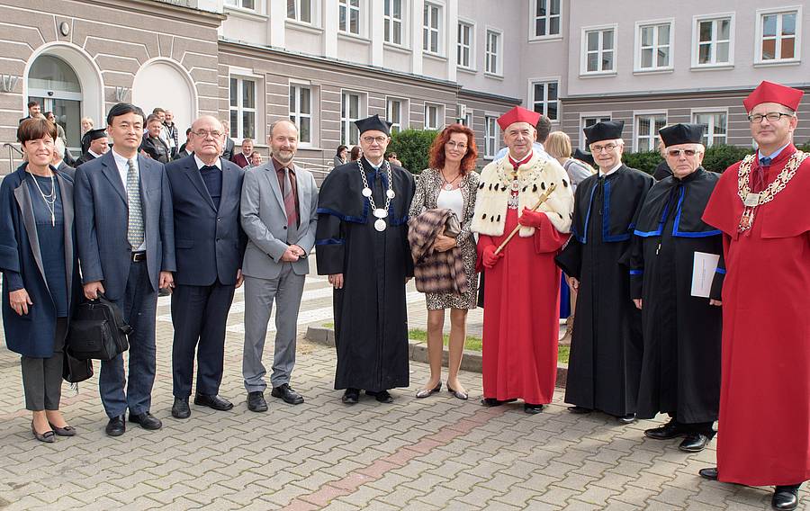 Als Ausdruck der Verbundenheit mit einer der größten Universitäten Polens darf die Teilnahme des Vizepräsidenten der Universität Vechta, Prof. Dr. Michael Ewig, an der Verleihung der Ehrenprofessur gesehen werden. Diese fand im Rahmen der Festlichkeiten zur Eröffnung des akademischen Jahres statt. Aus dem internationalen Netzwerk des Geehrten nahmen Spiegels chinesischer Kooperationspartner, der Welthistoriker und Friedensforscher Prof. Dr. Cheng Liu von der Nanjing University, teil sowie Prof. Dr. Andrea Lehner-Hartmann, Inhaberin des Lehrstuhls für Religionspädagogik der Universität Wien, die Erziehungs- und Bildungswissenschaftlerin Prof. Dr. Annette M. Stroß von der PH Karlsruhe und der Religionssoziologe der Katholische Universität Lublin, Prof. Dr. Janusz Marianski. Spiegels Leistung wurde noch einmal in der tags darauf stattfindenden Inaugurationsfeier der Umweltwissenschaftlichen Fakultät gewürdigt. Hier durfte er erstmals die für ihn maßgeschneiderte Robe als frischgebackener Prof. h.c. (Professor honoris causa) aus den Händen der Dekanin, Prof. Dr. Ewa Paturej, in Empfang nehmen und tragen.